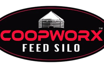 CoopWorx Feed Silo II, 40 lb Capacity, Rotomolded HDPE with UV-8 Stabilizer, Aluminum Post Mount, 6 Feed Ports, Lockable Hinged Lid, for Chicken Feed Storage