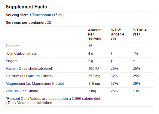 ChildLife's Liquid Calcium with Magnesium provides these two essential minerals combined with Vitamin D and Zinc in a balanced, absorbable, great tasting formula. These are the primary nutrients required for supporting your child's healthy bone growth and development.